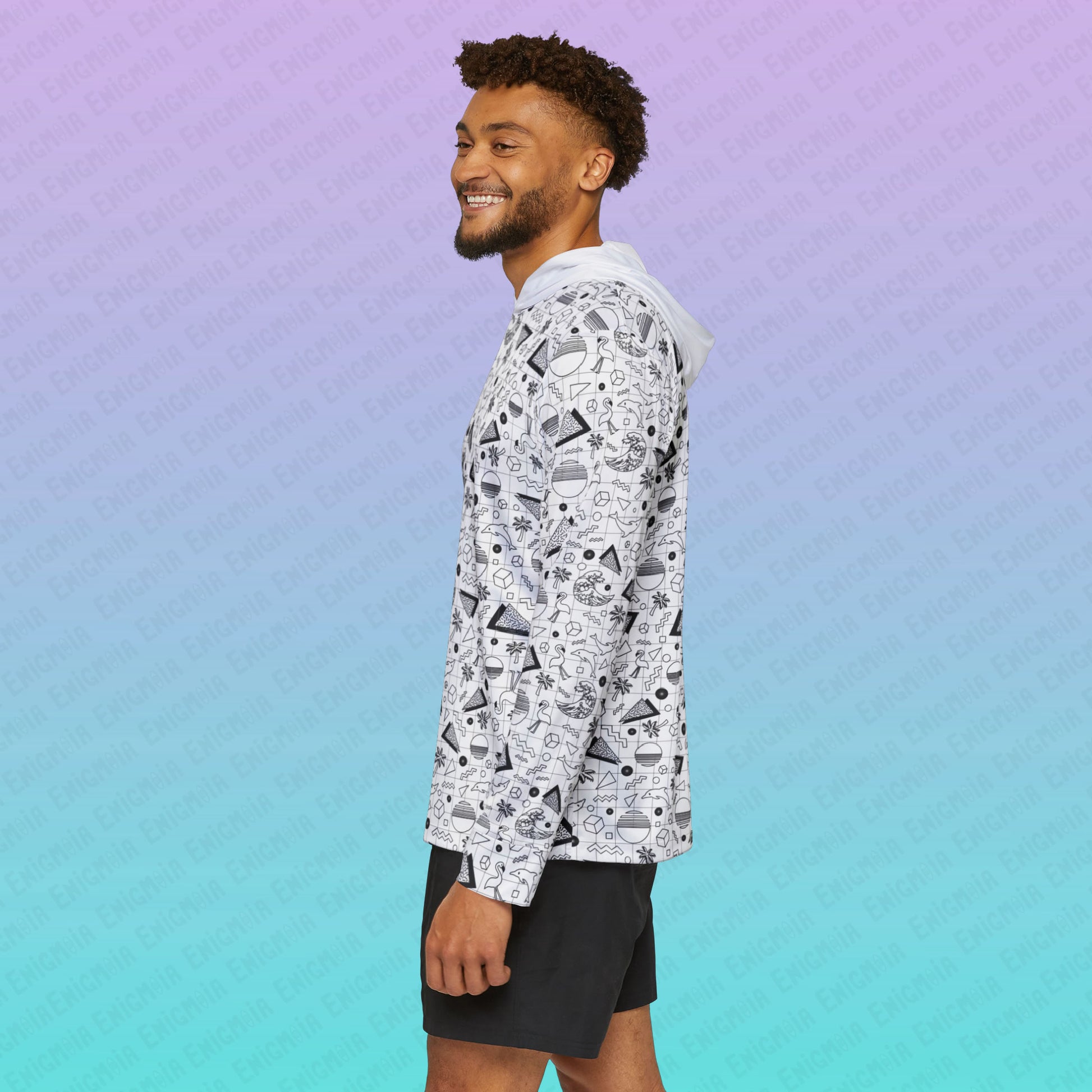 Vaporwave Beach Soirée — White - Men's Sports Warmup Hoodie