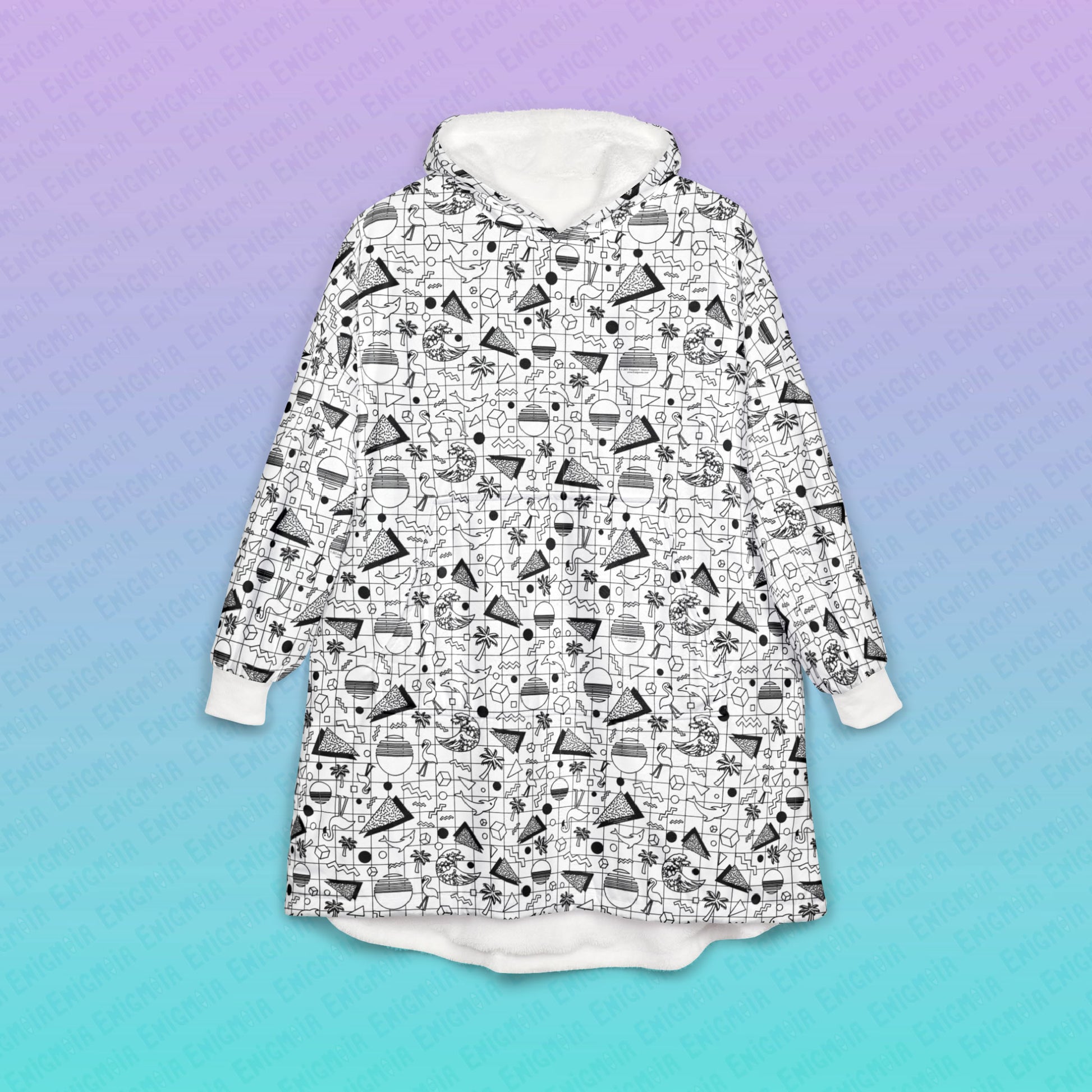 Vaporwave Beach Soirée — White - Unisex Hooded Blanket